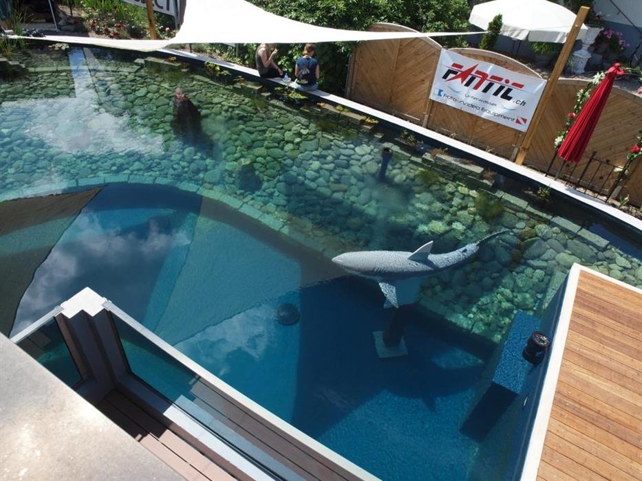 Der Kursleiter beobachtet die Teilnehmer während des Tauchgangs durch die Teichfenster. So können die Teilnehmer laufend von Tipps profitieren und bei Fragen einfach schnell auftauchen und gleich weiter üben.