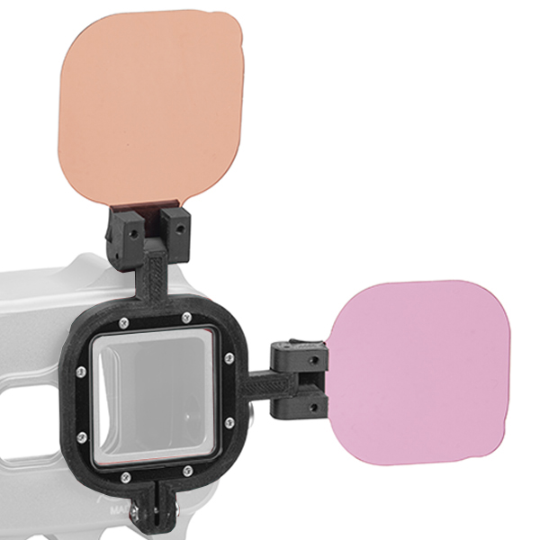 Doppelfilterhalter zur Farboptimierung in Magenta oder Rot, schnell zu verwenden unter Wasser. Einfach direkt am Gehäuse zu installieren für GoPro Hero8 bis 13 Black.