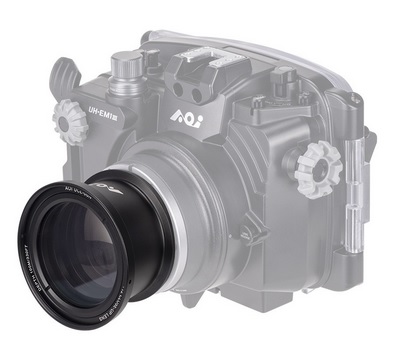 Das Nahaufnahmelinse wird am Anschluss des Gehäuses befestigt und kann während des Tauchgangs angebracht und entfernt werden. Es kann direkt an Anschlüssen mit 67-mm-Gewinde und mit einem Adapter auch an anderen Abmessungen befestigt werden.
