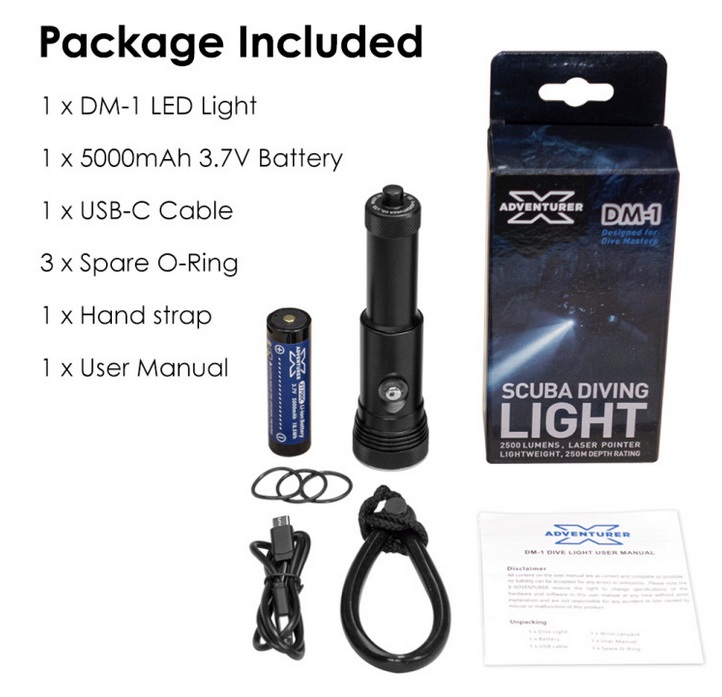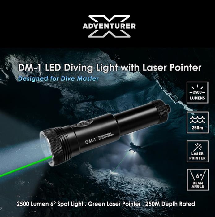 X-Adventurer DM-1 LED Tauchlampe (-Spot) mit grünem Laserpointer