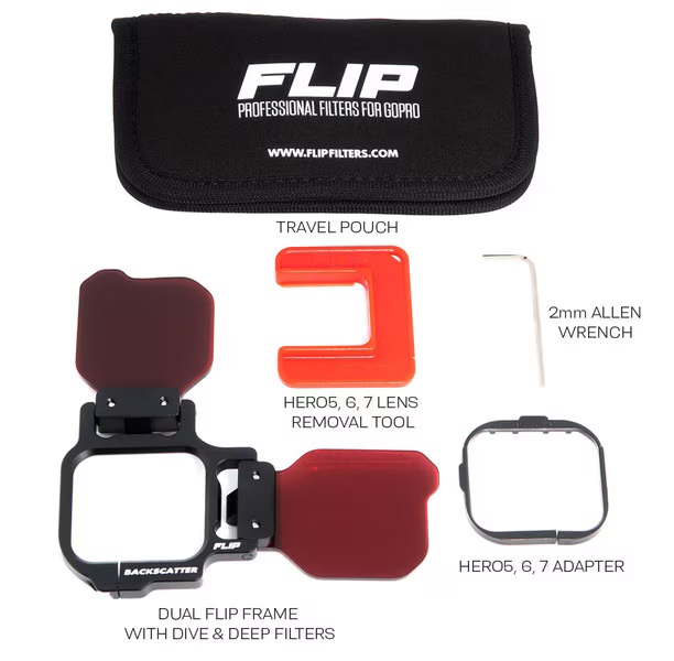 One filter is not enough. Thousands of dives have been made to determine the best filter formulas for all diving depths. This 2 Filter Kit is your simple solution for the perfect color. Flip between any 2 filters on the same dive with the touch of a finger. FLIP13 is designed to survive the drops and abuse that we regularly give our own gear. With aircraft-grade aluminum and virtually unbreakable filter optics, we're confident you'll find that the FLIP system delivers the most rugged design along with the world's best color for GoPro.