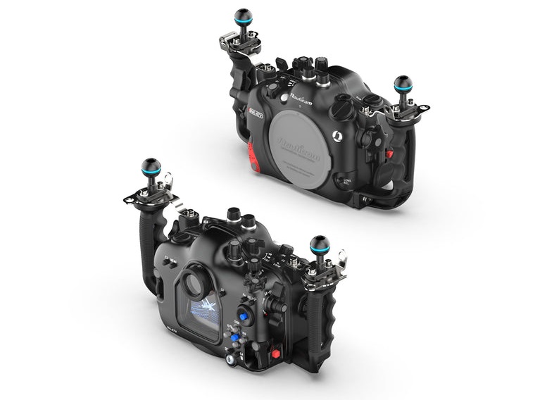 In true Nauticam fashion, essential controls are placed as close to the handles as possible, making these housings the most intuitive and user-friendly available. Our engineers strategically position controls where they’re needed most, rather than simply near the corresponding buttons on the camera. Dials feature rubberized finger grooves, and levers are designed for smooth operation.