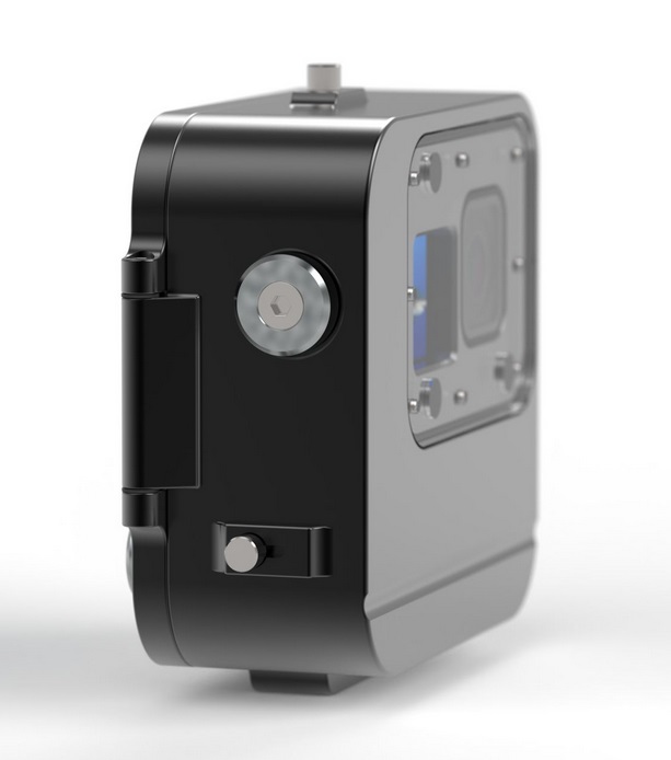 Mounting via two 1/4? camera threads on the housing base.