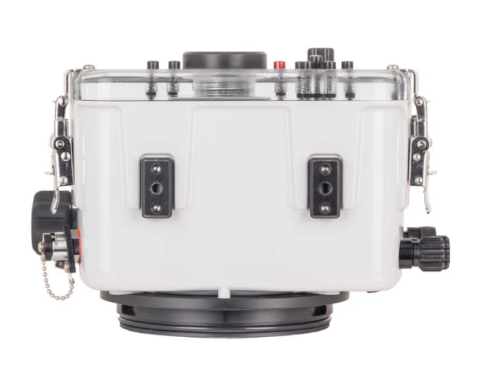 Il n'y a pas de meilleure assurance que de pouvoir voir votre appareil photo et le joint torique à travers l'arrière du caisson. Notre conception exclusive à rainure ouverte maintient le joint torique arrière dans une position naturelle, plus facile à entretenir et plus fiable que de forcer le joint torique dans une rainure. Une fois le caisson fermé, vous pouvez voir le joint torique former un joint étanche et solide.