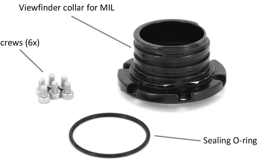 Questo collare adatta i mirini ingrandenti a 45/180º per DSLR da utilizzare con gli alloggiamenti MIL.