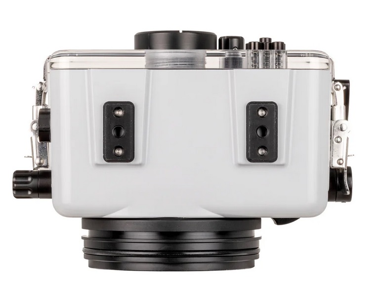Non c'è maggiore sicurezza che poter vedere la fotocamera e la guarnizione O-ring attraverso il retro della custodia. Il caratteristico design a scanalatura aperta di Ikelite mantiene l'O-ring posteriore in una posizione naturale, più facile da mantenere e più affidabile rispetto a forzare l'O-ring in un canale. Una volta chiusa la custodia, è possibile vedere l'O-ring formare una tenuta solida e impermeabile.