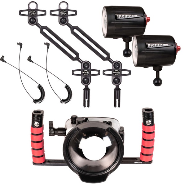 Custodia subacquea Ikelite per OM System Tough TG-7/TG-6 e kit grandangolare Ecko Strobes