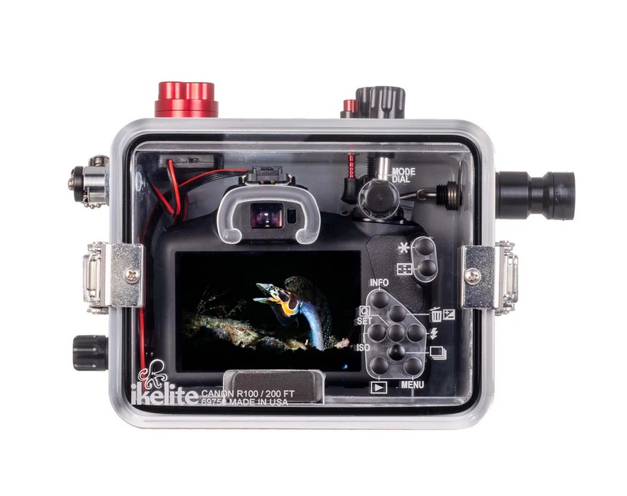 Custodia subacquea Ikelite 200DLM/D per Canon EOS R100 (aggiornamento fibra ottica), senza porta